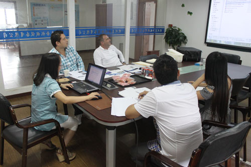 The two customers from Venezuela needed a complete unit of cheese processiong equipments. On June 30th 2014, they came to our company to negotiate with sales staff and engineers on specific details and went to visit the food processiong equipment in our factory.
