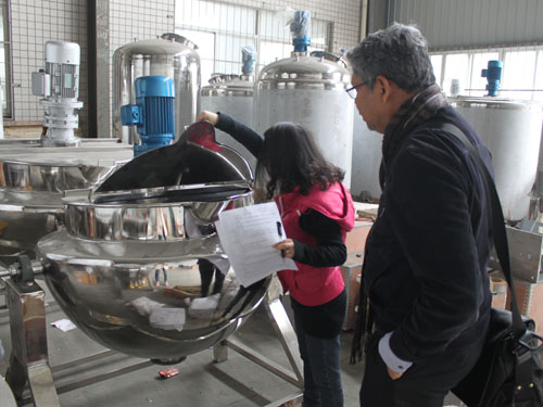 經(jīng)過與業(yè)務(wù)員的多次溝通與確認,新加坡客戶于2015年3月12日在我公司下單一臺600L高壓蒸煮鍋。目前設(shè)備已接近收尾工作,客戶來我公司驗貨,業(yè)務(wù)員熱情接待并為其講解了我公司的其它機械設(shè)備。